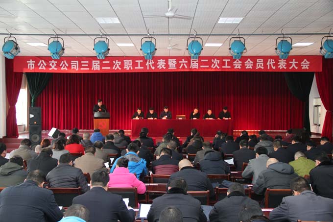 2017年2月12日上午8:30分,市公交公司召開了三屆二次職工代表暨六屆二次工會會員代表大會。大會共有代表88人,實到85人,請假3人,列席代表13人。大會對2016年度公司先進集體及先進個人進行了表彰;公司領導為2016年度先進集體、優(yōu)秀黨支部、先進個人頒發(fā)了獎牌和證書;審議通過了公司經理做的《2017年公司工作報告》、工會主席做的《2017年公司工會工作報告》以及《公司2017年財務工作報告》、《公司行車安全制度修改草案》、《公司加氣(油)站安全管理暫行辦法》等事宜。