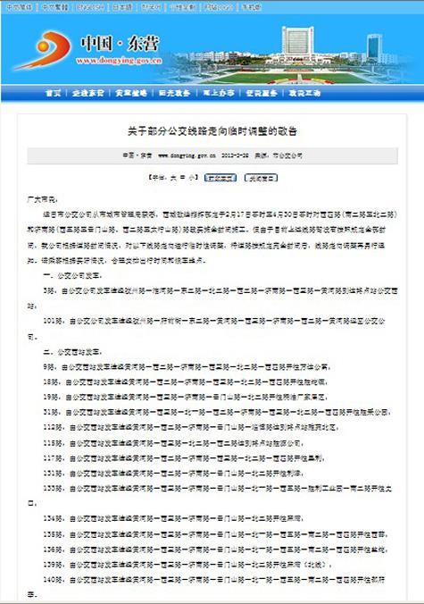 2012年2月28日東營市政府網站報道