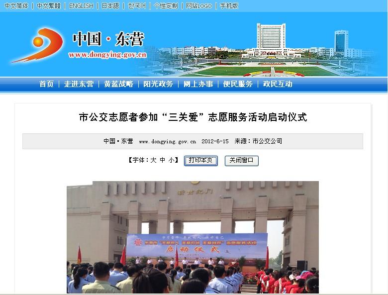 2012年6月15日東營市政府網站報道
